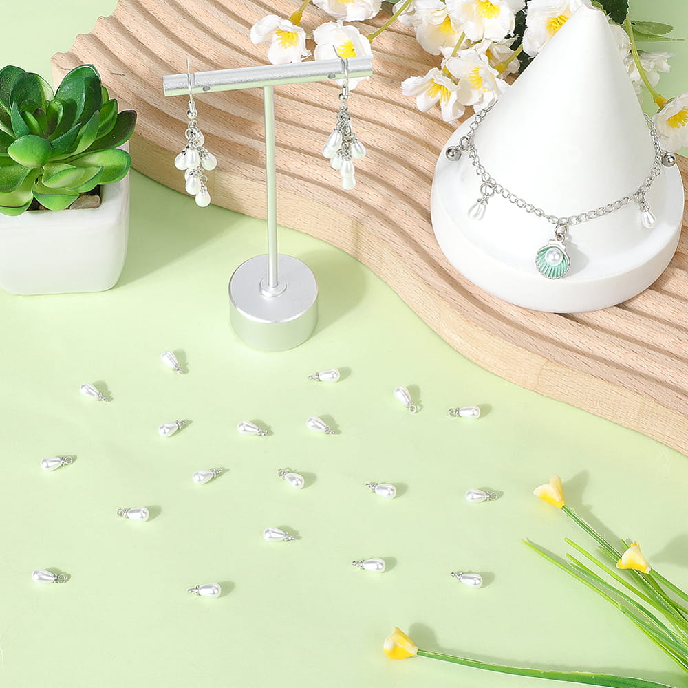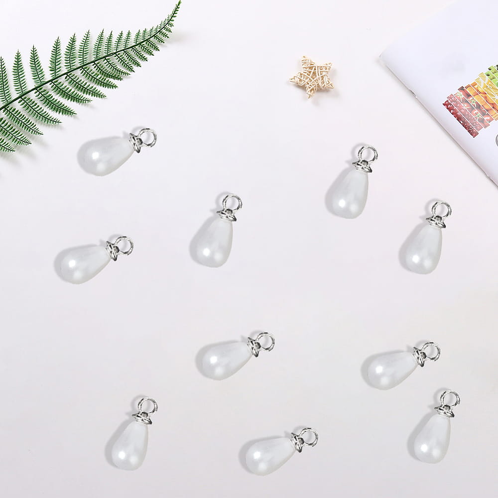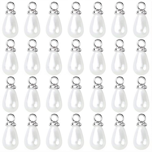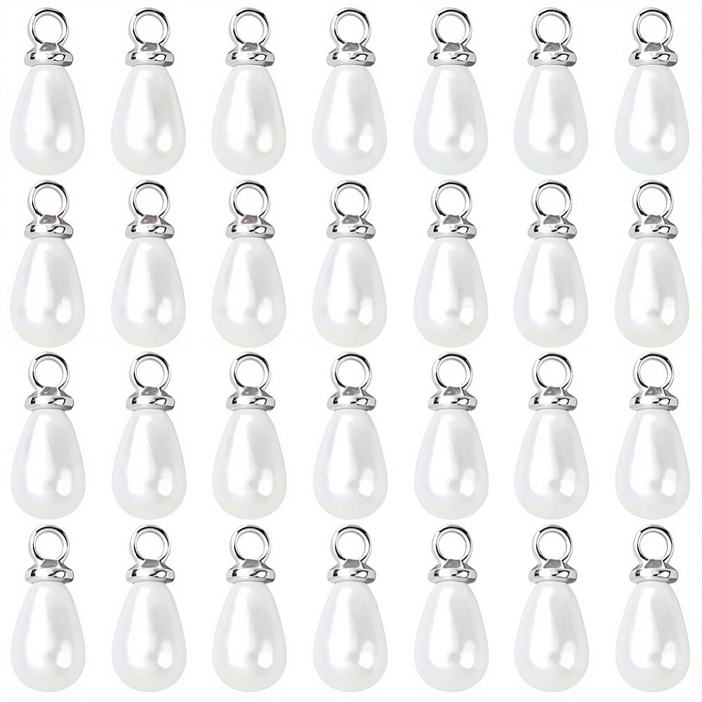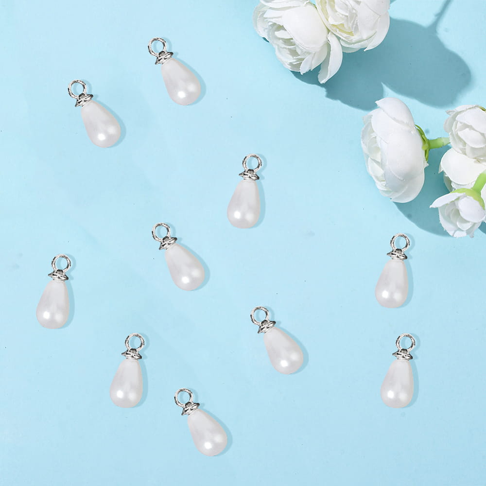 Zawieszki perłowa kropelka, łezka z oczkiem ze stali nierdzewnej. 10 sztuk.