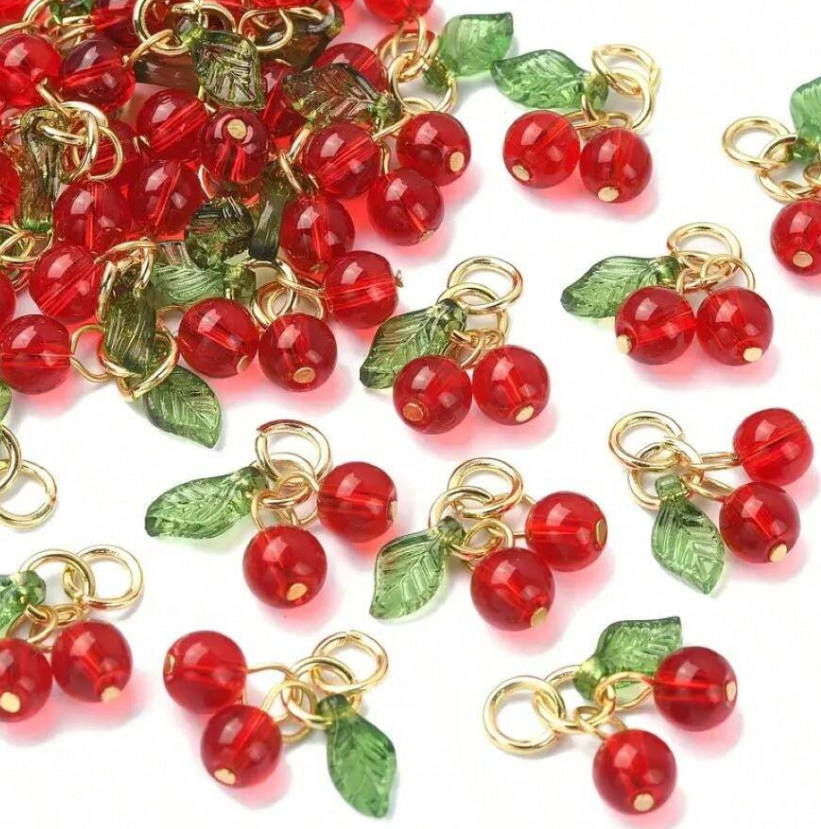 ZAW26 Zawieszki listek wiśnia wisienka porzeczki do bransoletek 2szt owoc
