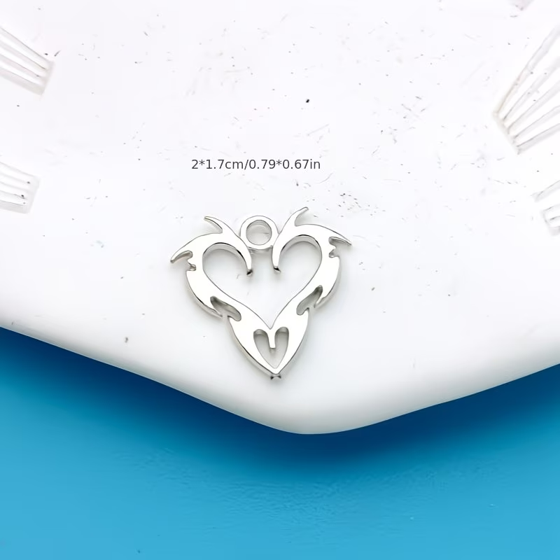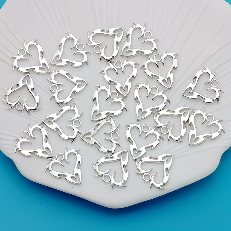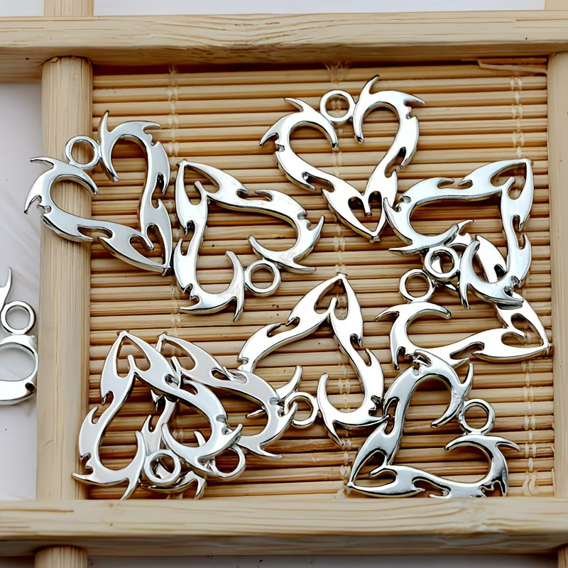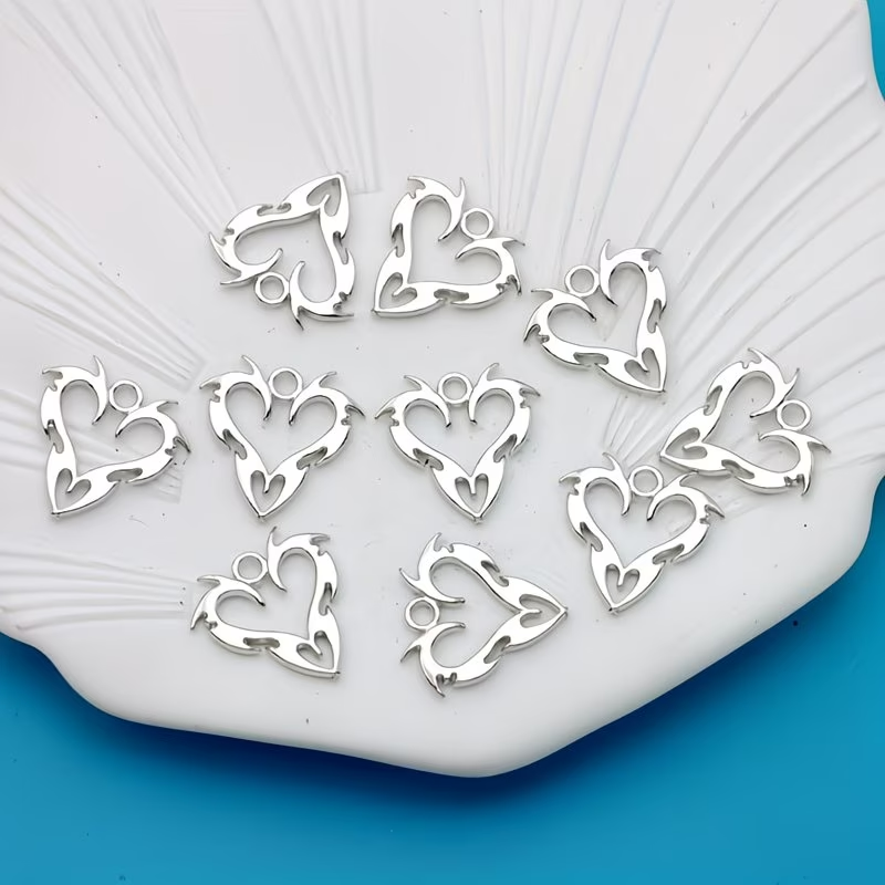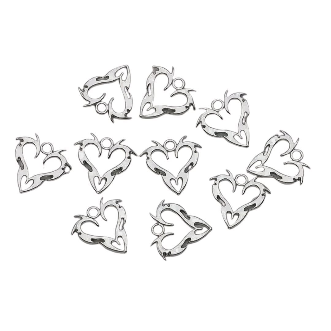 Zestaw ZAWIESZKI CHARM 5 sztuk, serce płonące.