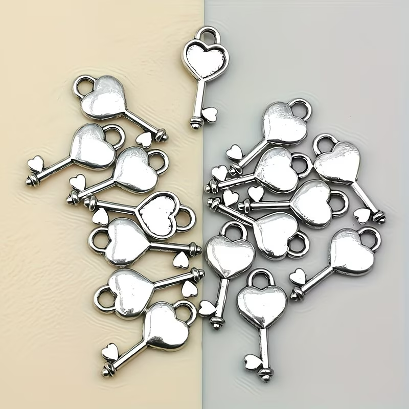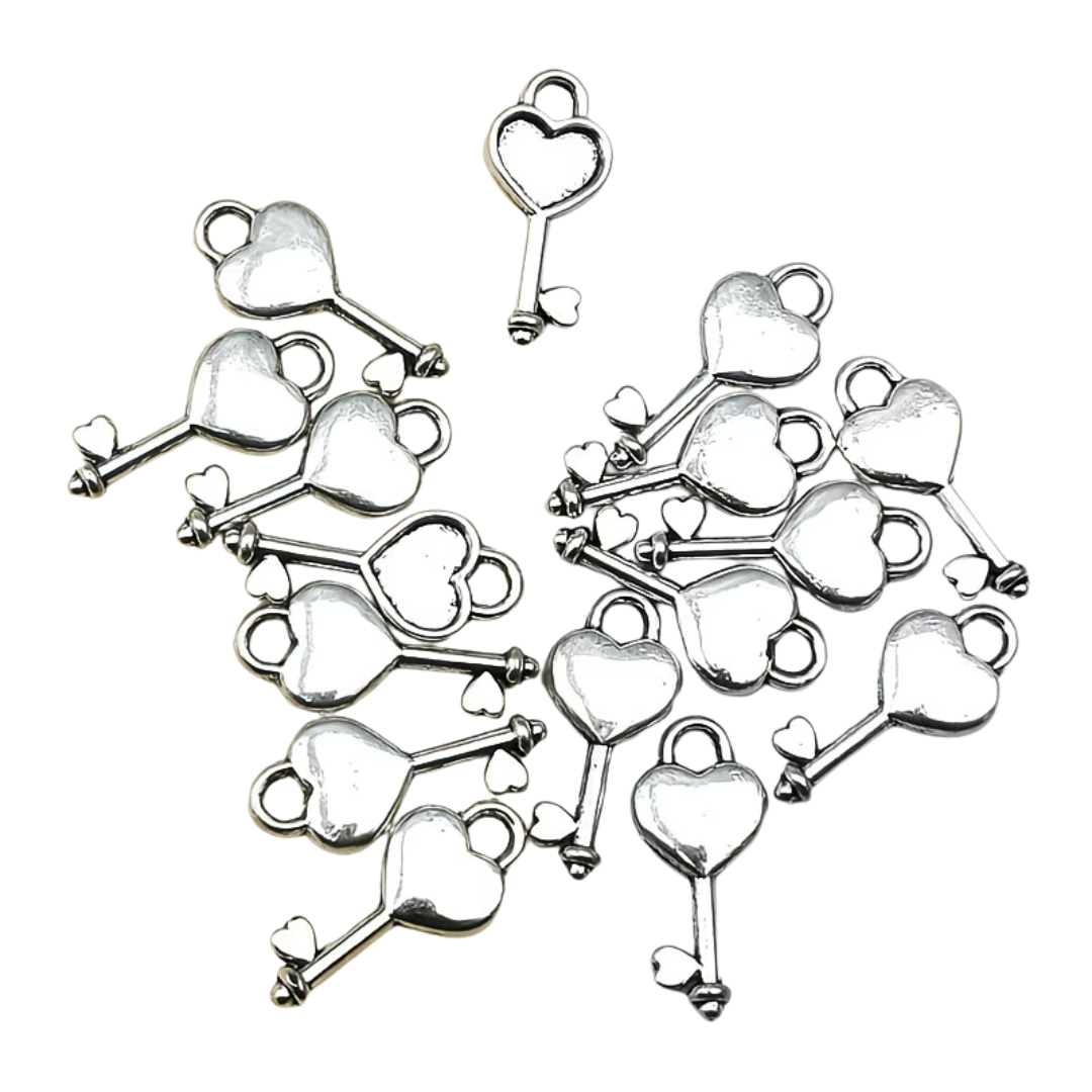 Zestaw ZAWIESZKI CHARM 10 sztuk, serce kluczyk.