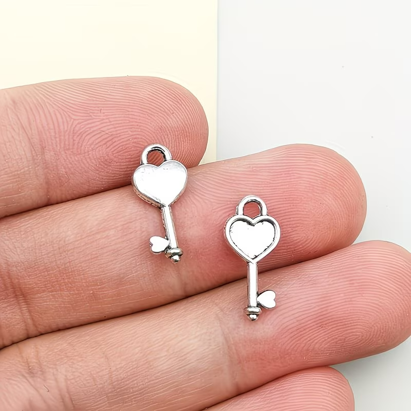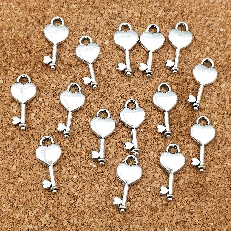 ZAW266 Zawieszki metalowe serce serduszko kluczyk klucz stare srebro 10szt