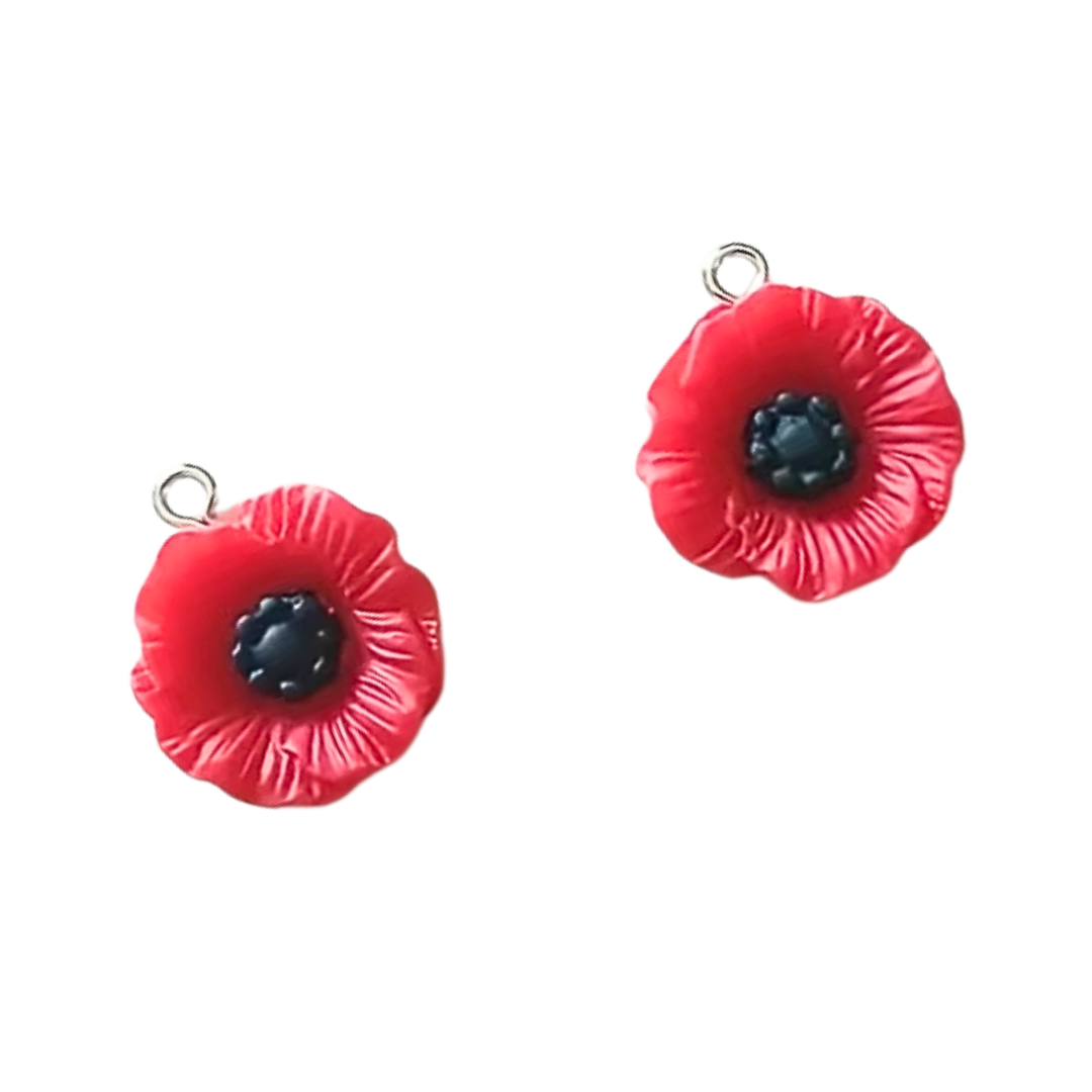 ZAW269 Zawieszki akryl żywica maki mak czerwone kwiaty MACZKI 2szt