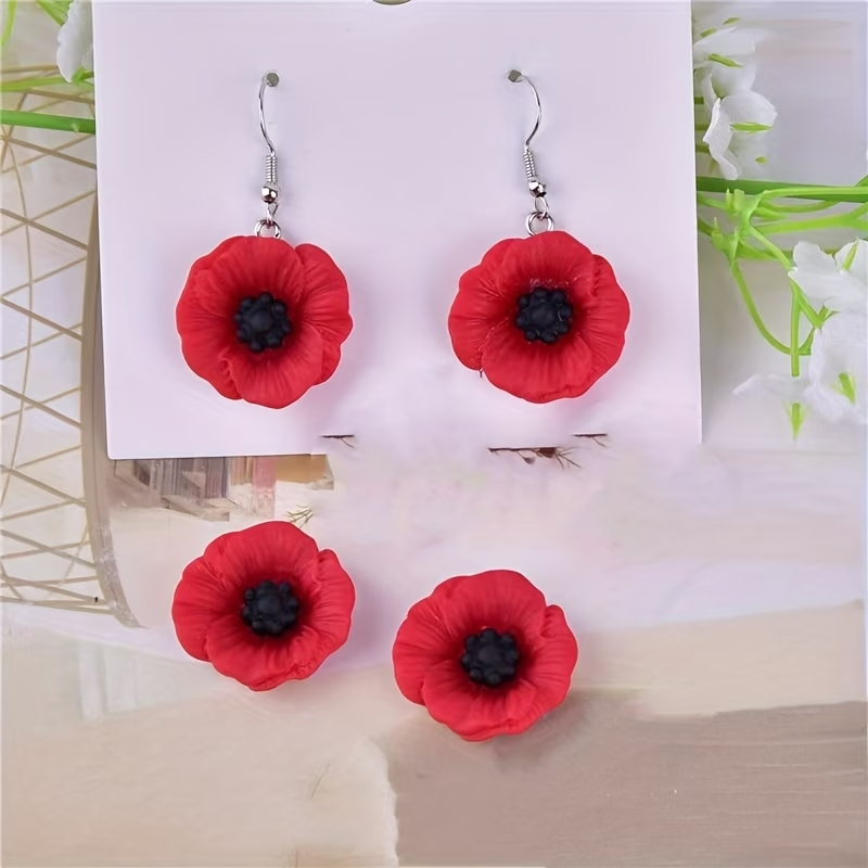 Zestaw ZAWIESZKI CHARM 2 sztuki, imitacja prawdziwych kwiatów mak. Maki, maczki, czerwone kwiaty.