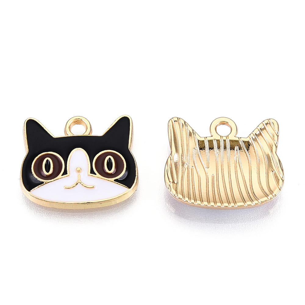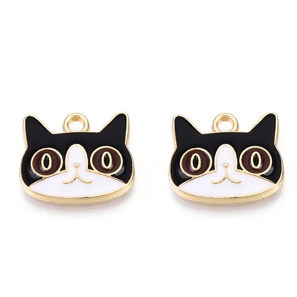 ZAW271 Zawieszki metalowe kot kotek czarny emalia do bransoletek 2szt