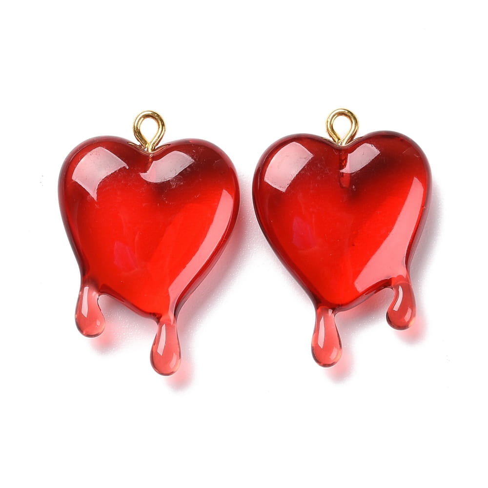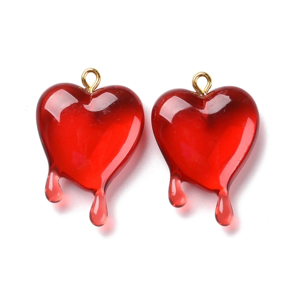 ZAW274 Zawieszki z żywicy 30mm serce serduszko krwawiące krople 2szt czerwone