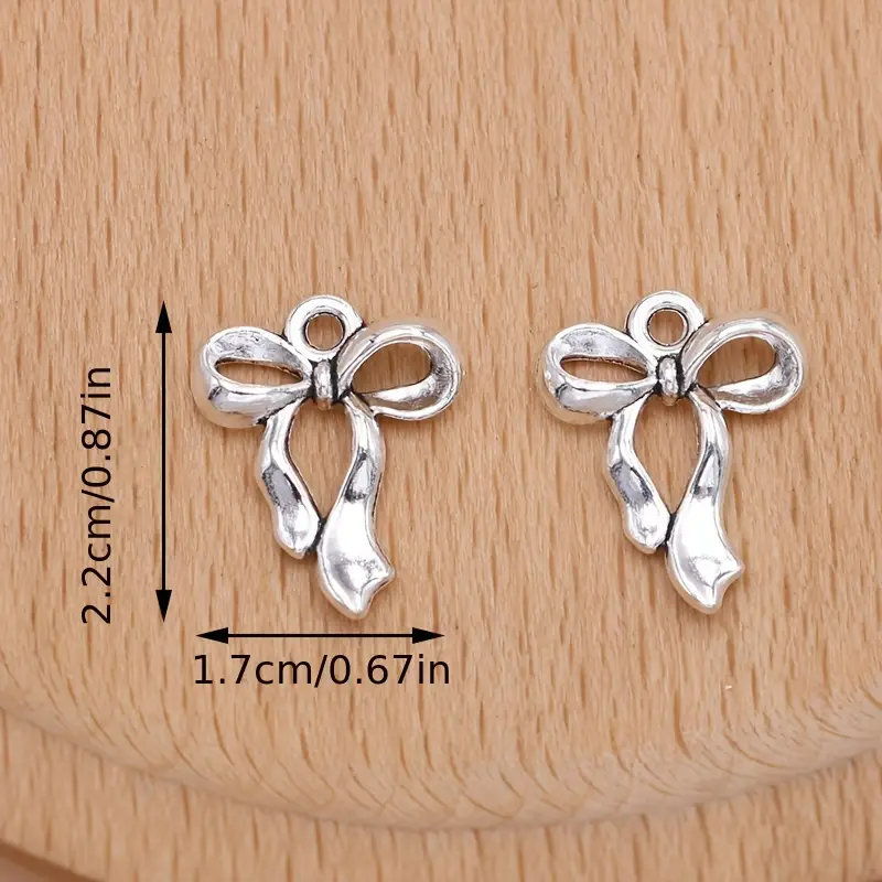 ZAW28 Zawieszki charm metalowe KOKARDKA kokarda do bransoletek 2szt