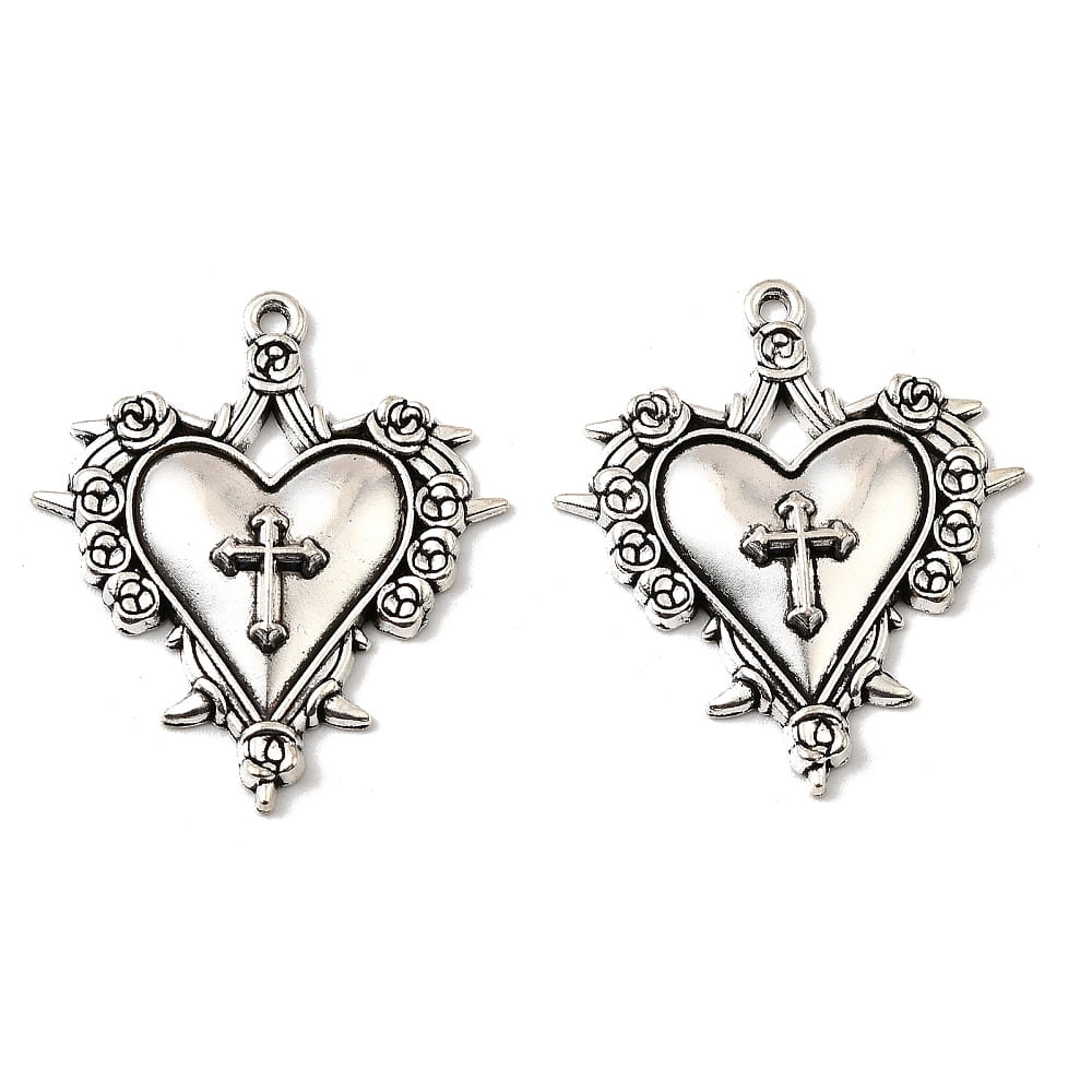 ZAW280 Zawieszka metalowa SERCE krzyż krzyżyk gotyk boho vintage 2szt