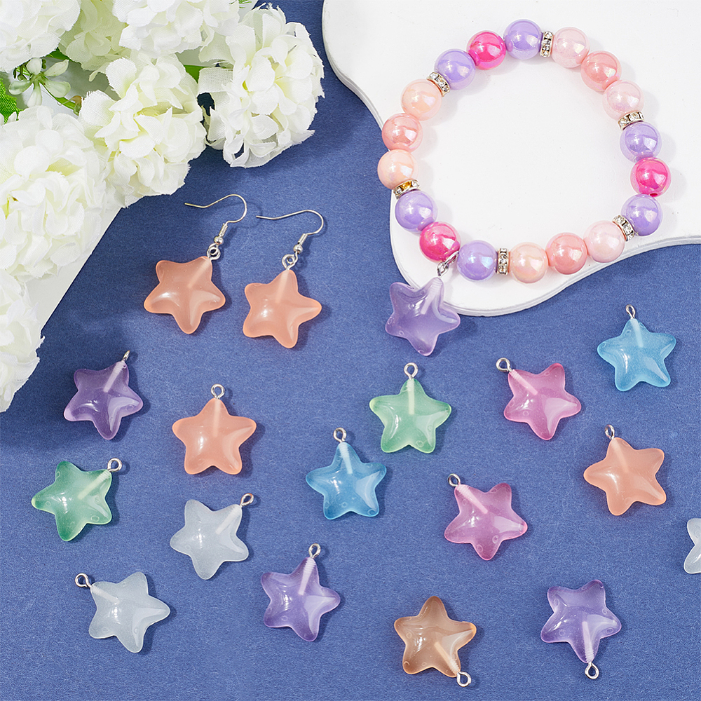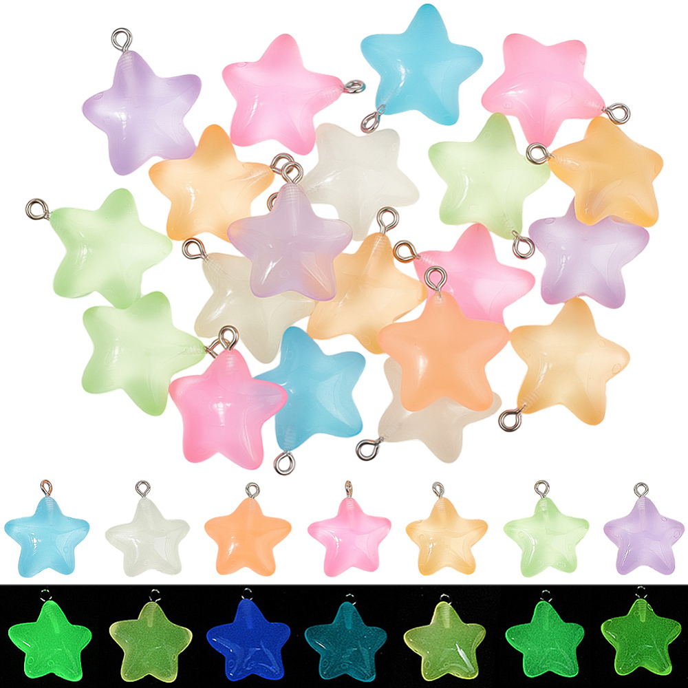 Piękne zawieszki z akrylowej żywicy, 5 sztuk w miksie kolorów, półprzezroczyste, świecą w ciemności.