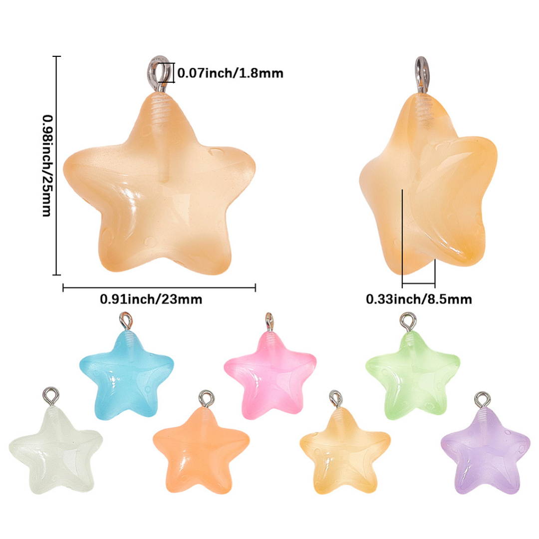 ZAW289 Zawieszki gwiazdka gwiazdy żelowe świecą w nocy MIX 5szt