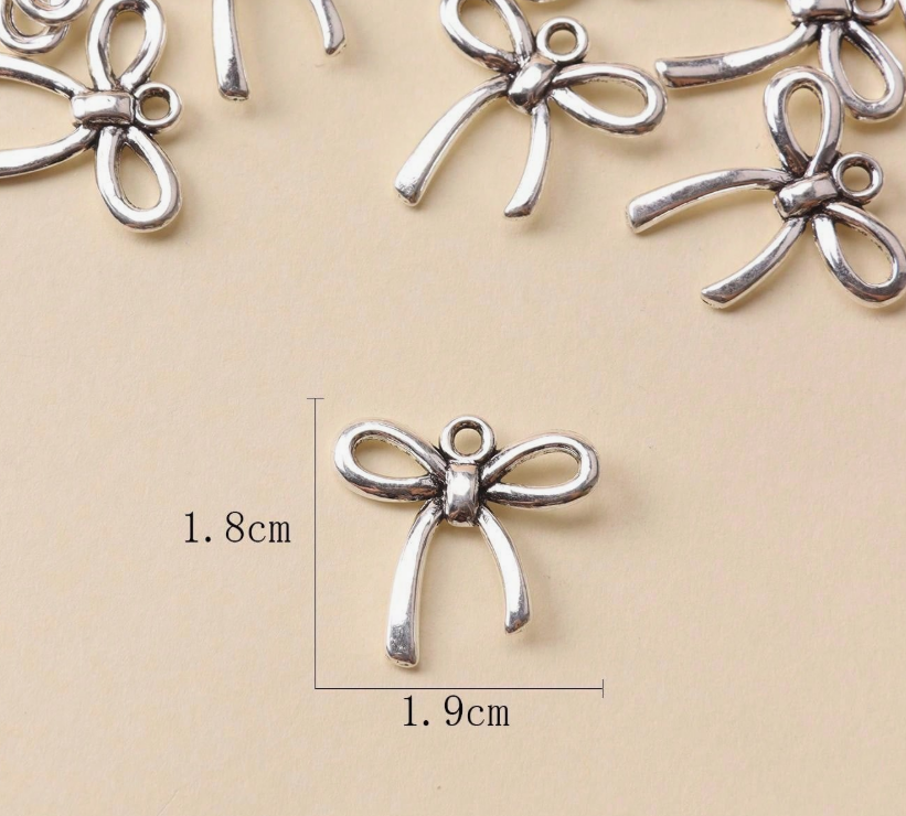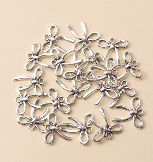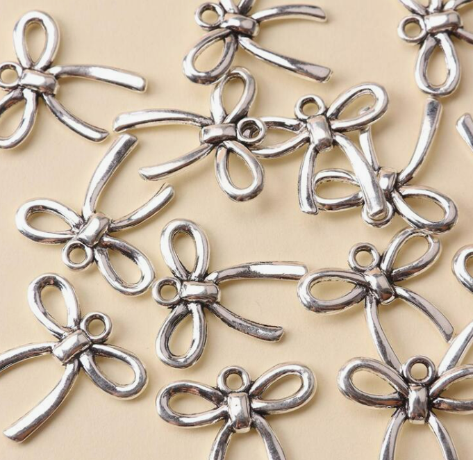 ZAW29 Zawieszki charm metalowe KOKARDKA kokarda do bransoletek 2szt