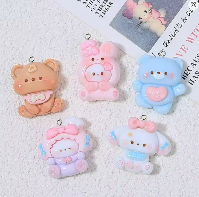 ZAW298 Zawieszka żywica jellycat miś królik zwierzątka cute miks 5szt