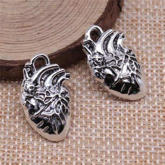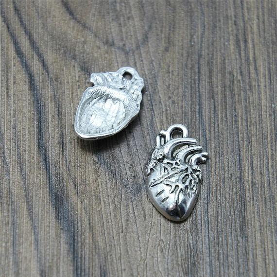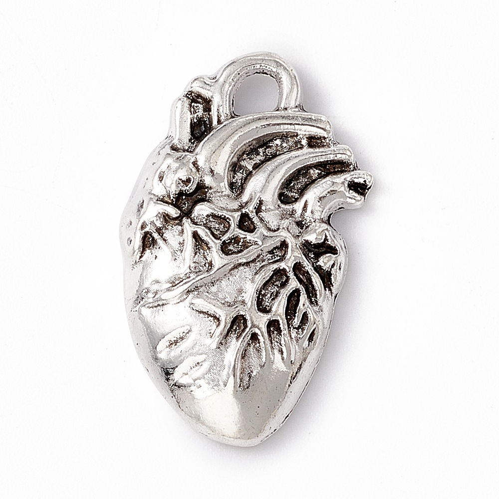 ZAW306 Zawieszki metalowe serce anatomiczne gotyk alternative stare srebro 5szt