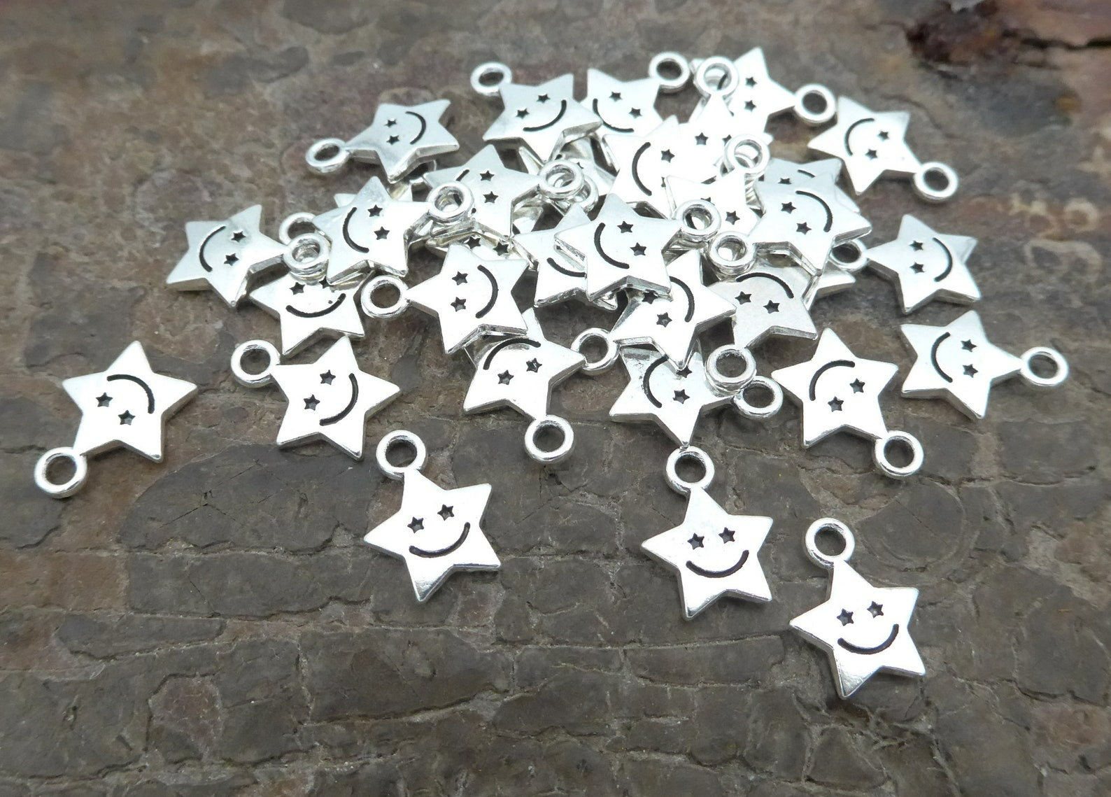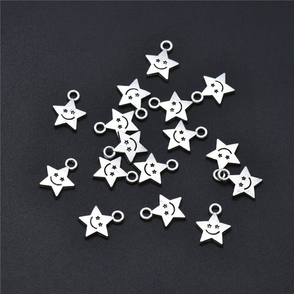 ZAW307 Zawieszki charm metalowe GWIAZDKA gwiazdki minka uśmiech 10szt