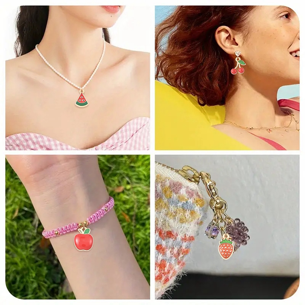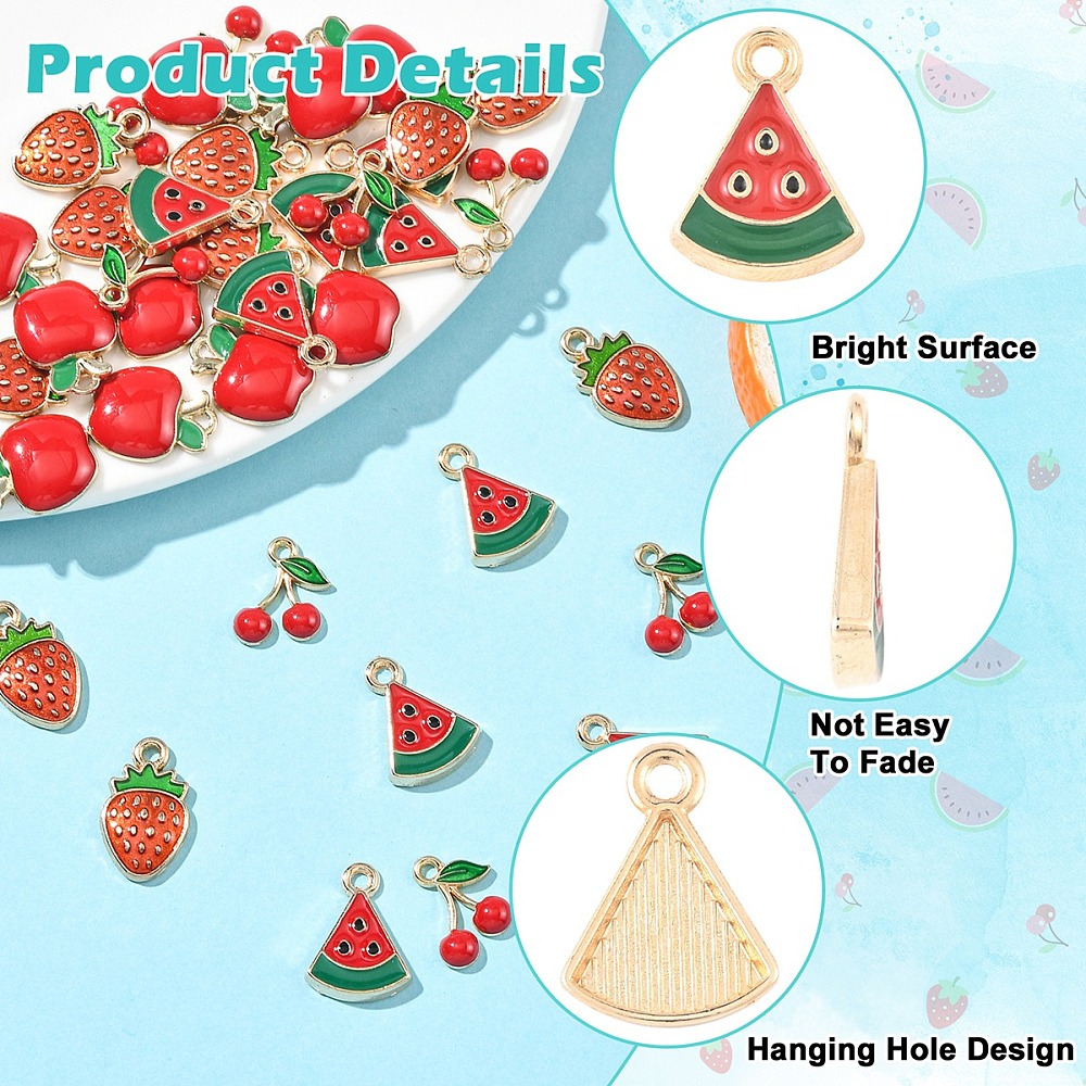 W komplecie 4 zawieszki, każda w innym wzorze: truskawka, arbuz, jabłko, wiśnie.