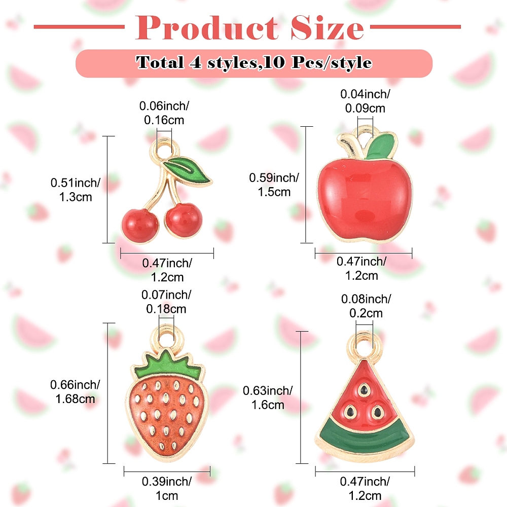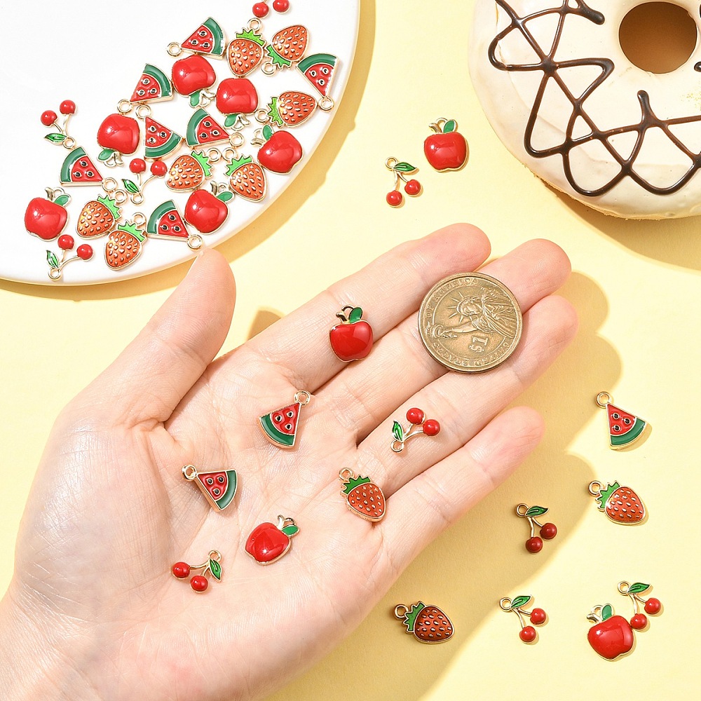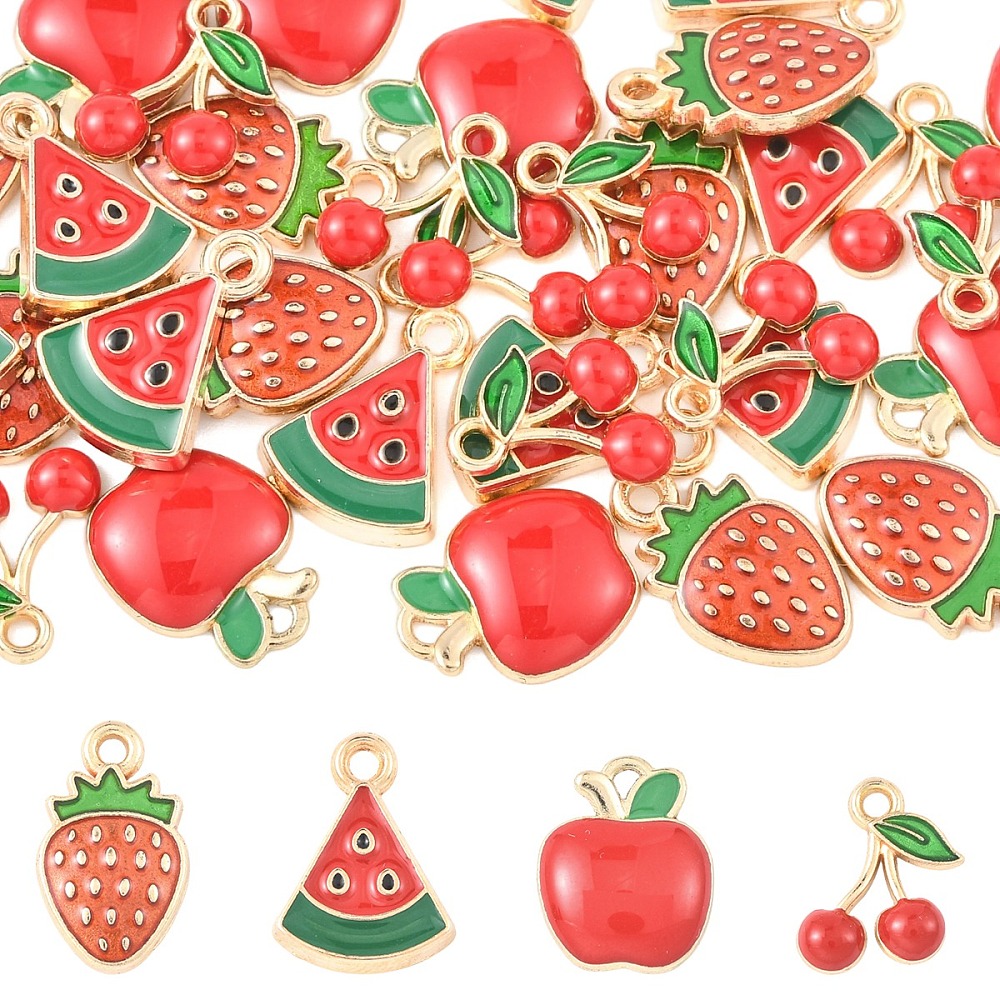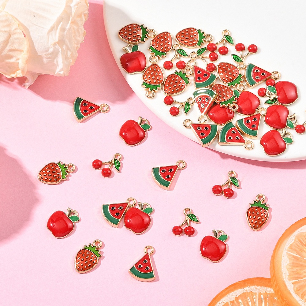 ZAW310 Zawieszki metalowe OWOCE owoc truskawka wisienki emaliowane mix 4szt