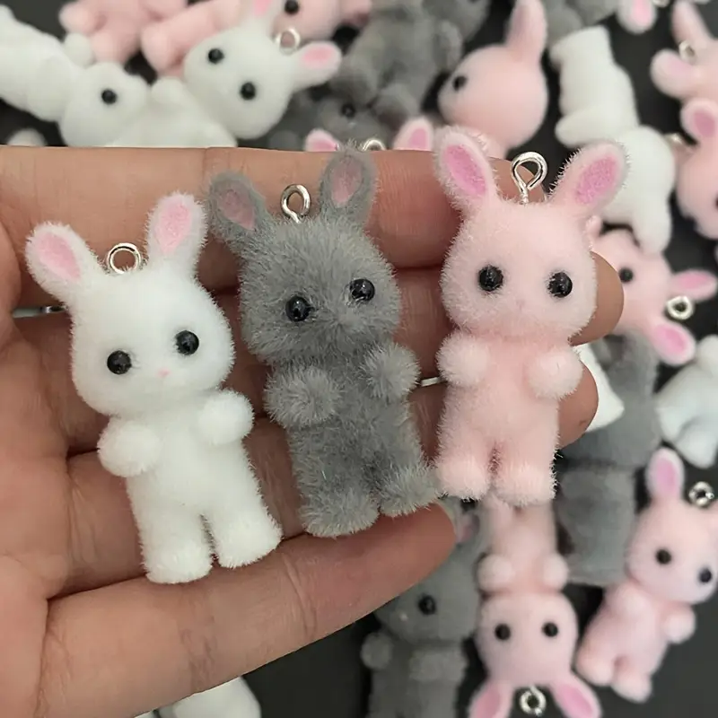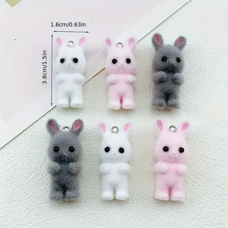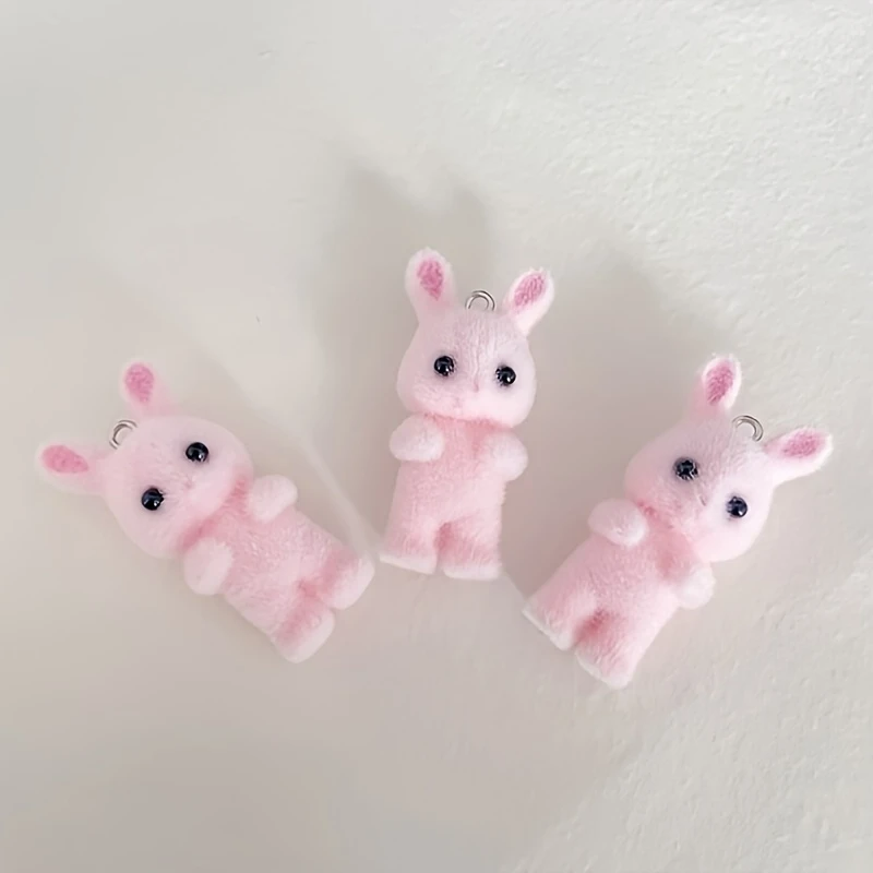 Zawieszka jest bardzo pięknie wykonana, dosyć duża, z metalowym oczkiem montażowym o średnicy 2 mm, jest wykonana z żywicy akrylowej, pokrytej małymi włoskami - wygląda jak prawdziwe futerko. Króliczek ma różowe uszy i czarne oczka.