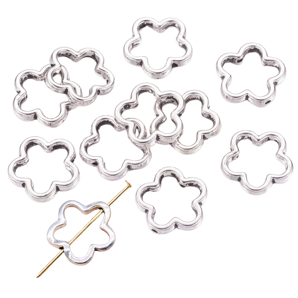 ZAW55 Zawieszki charm przekładka metalowa ramka KWIATEK na KORALIK 5szt