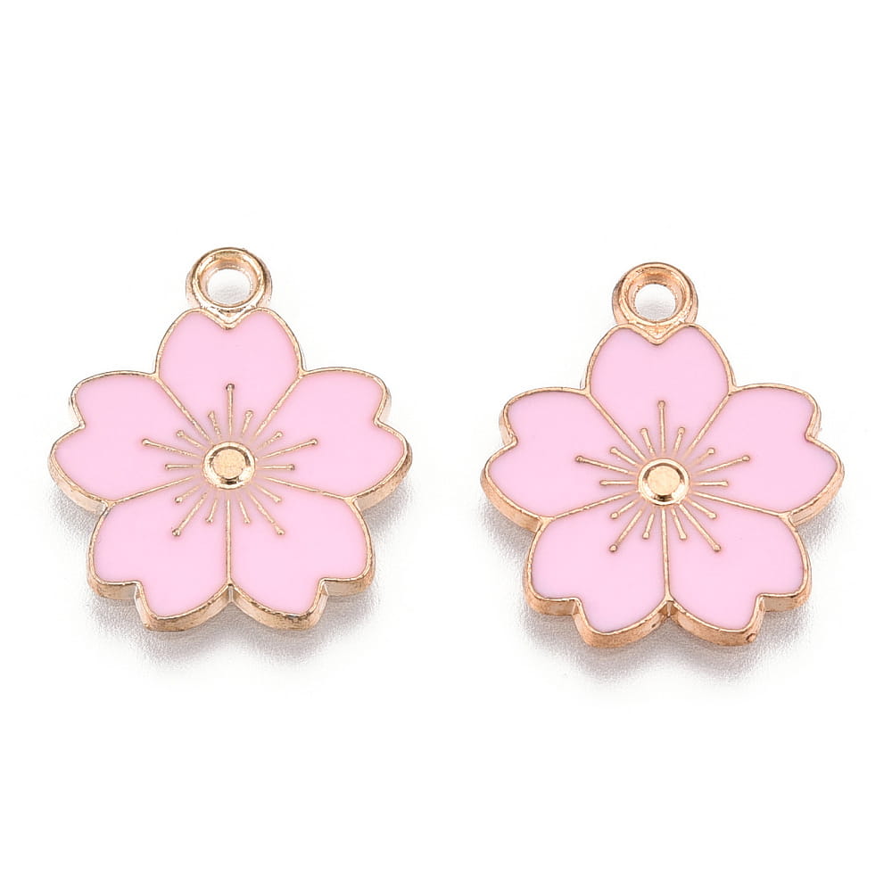 ZAW58 Zawieszki charm metalowe kwiat KWIATEK jasnoróżowy do bransoletek 2szt