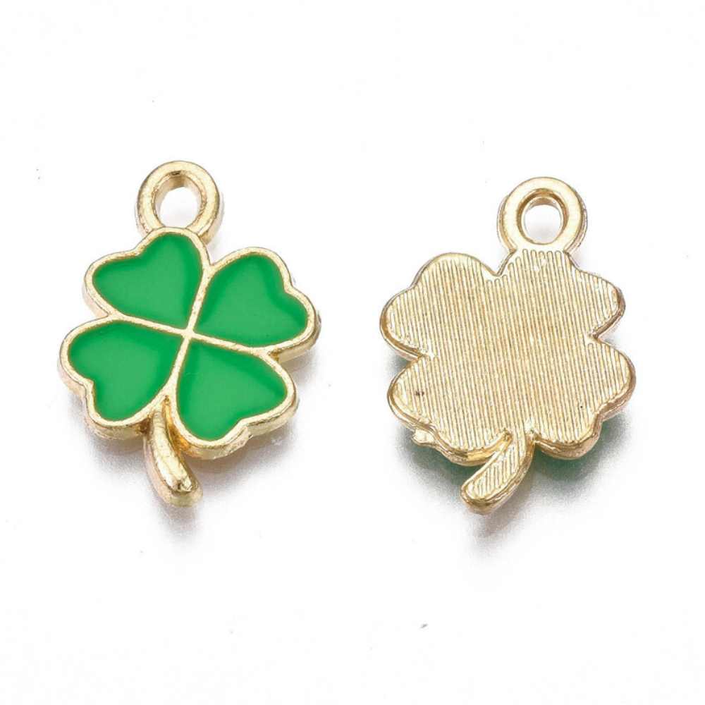 Piękne zawieszki KONICZYNA KONICZYNKA czterolistna. W komplecie 5 zawieszek emaliowanych. Szczęśliwa koniczyna, lucky clover.