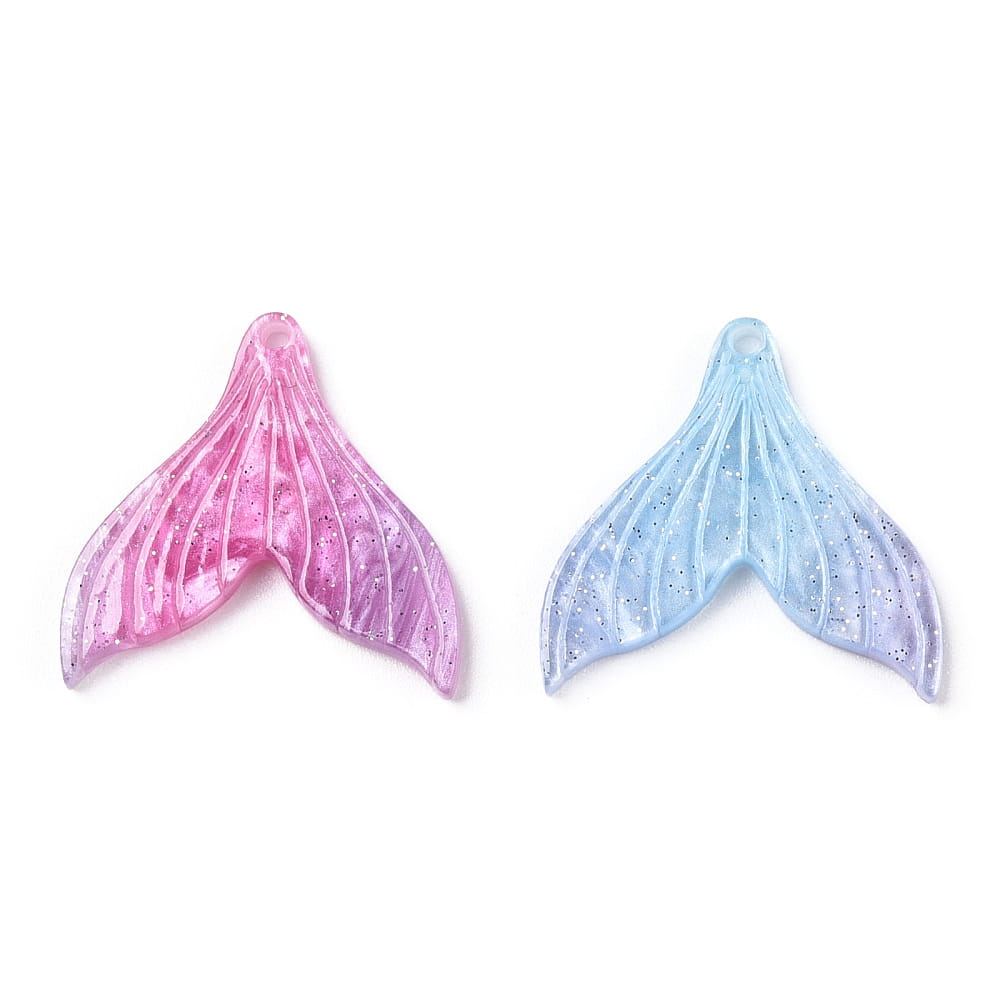 W opakowaniu znajduje się 5 różnobarwnych koralików zawieszek ogon syrenki. Idealne, jeśli robisz breloki i inne wyroby biżuterii hand made, zwłaszcza te personalizowane. Są wykonane z żywicy z masą perłową i brokatem, nie tracą koloru. Są świetne do wykonania breloków, zawieszek i zakładek do książek.