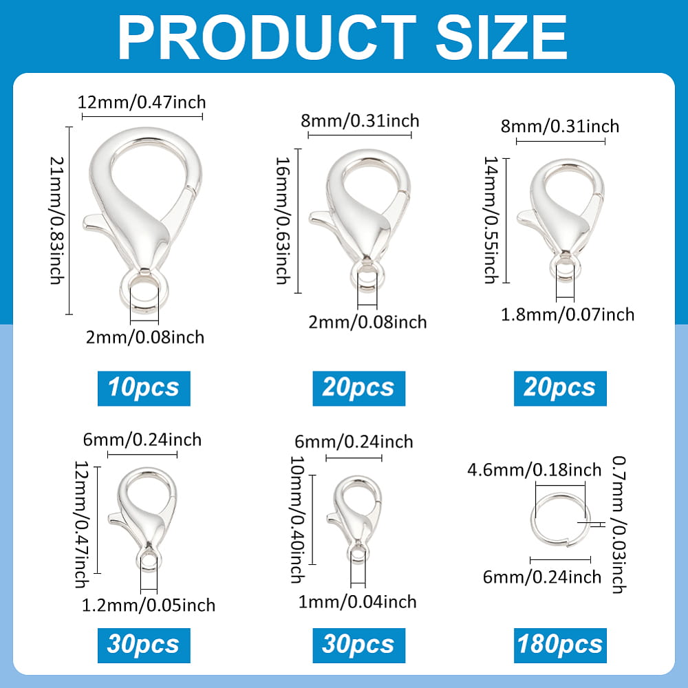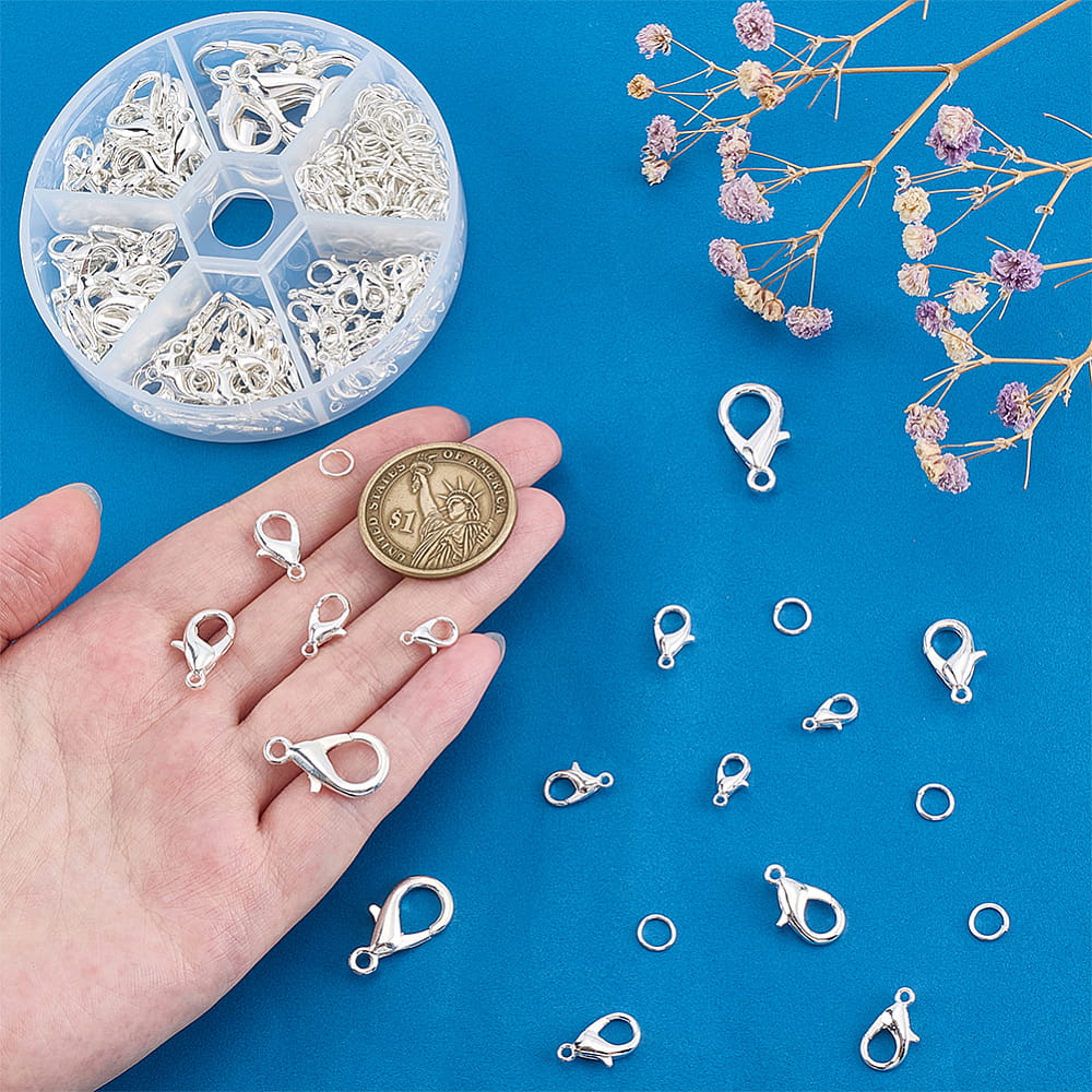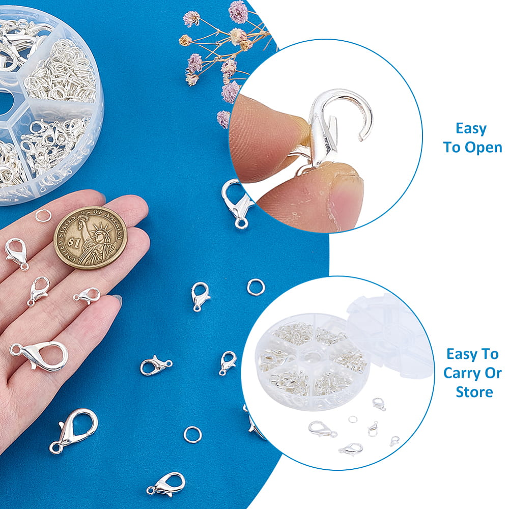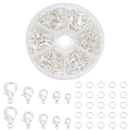 ZE12 Zestaw karabinki i ogniwa kółka do biżuterii 290szt organizer srebrne