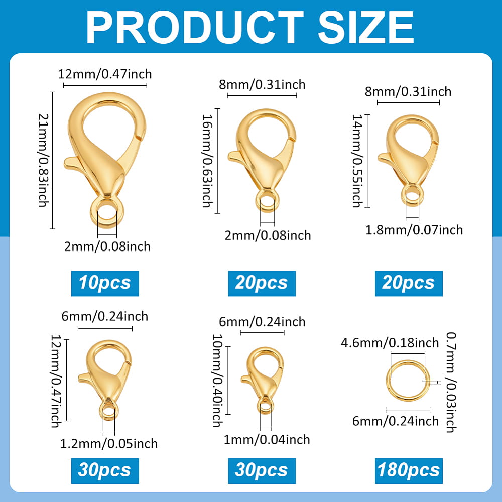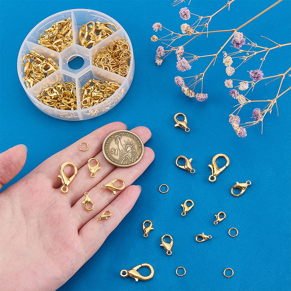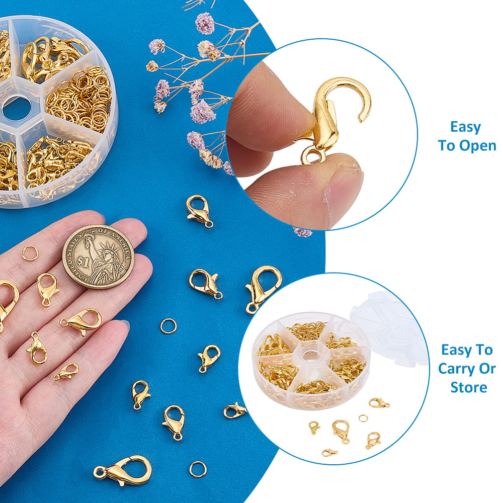 ZE13 Zestaw karabinki i ogniwa kółka do biżuterii 290szt organizer złote