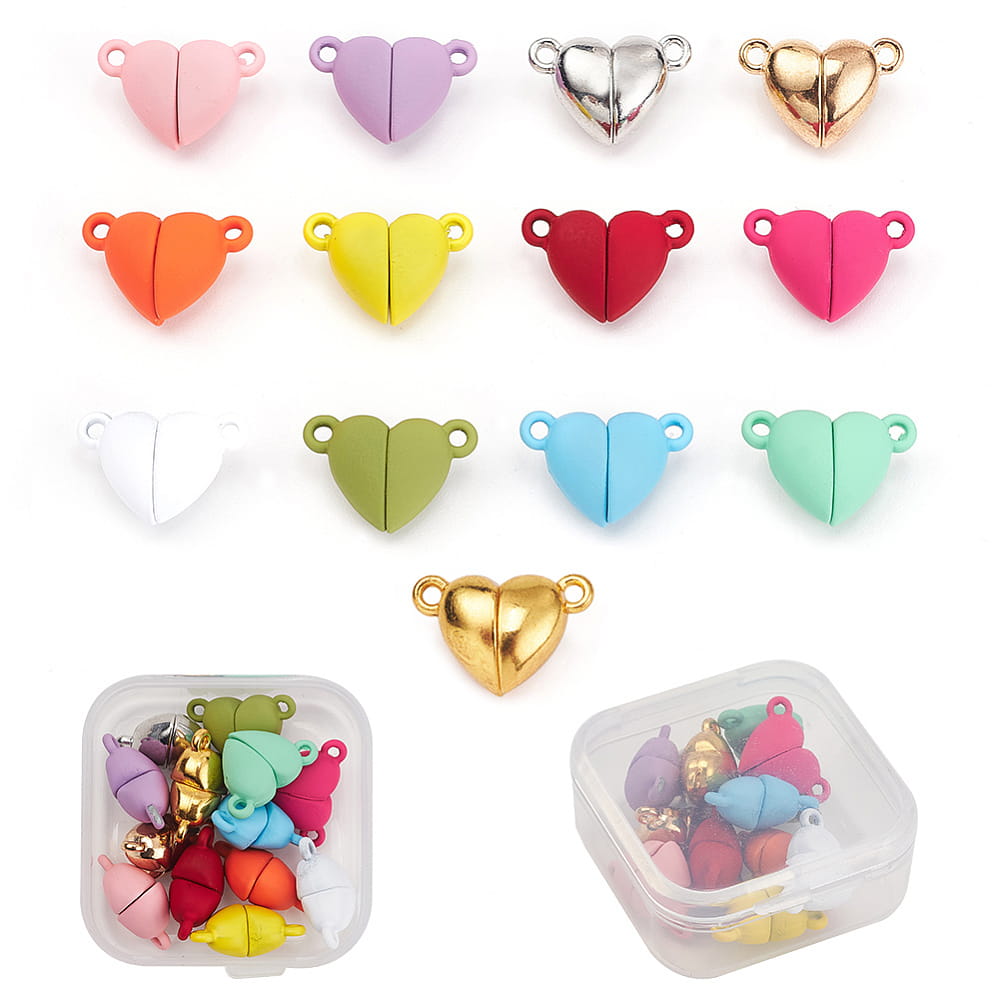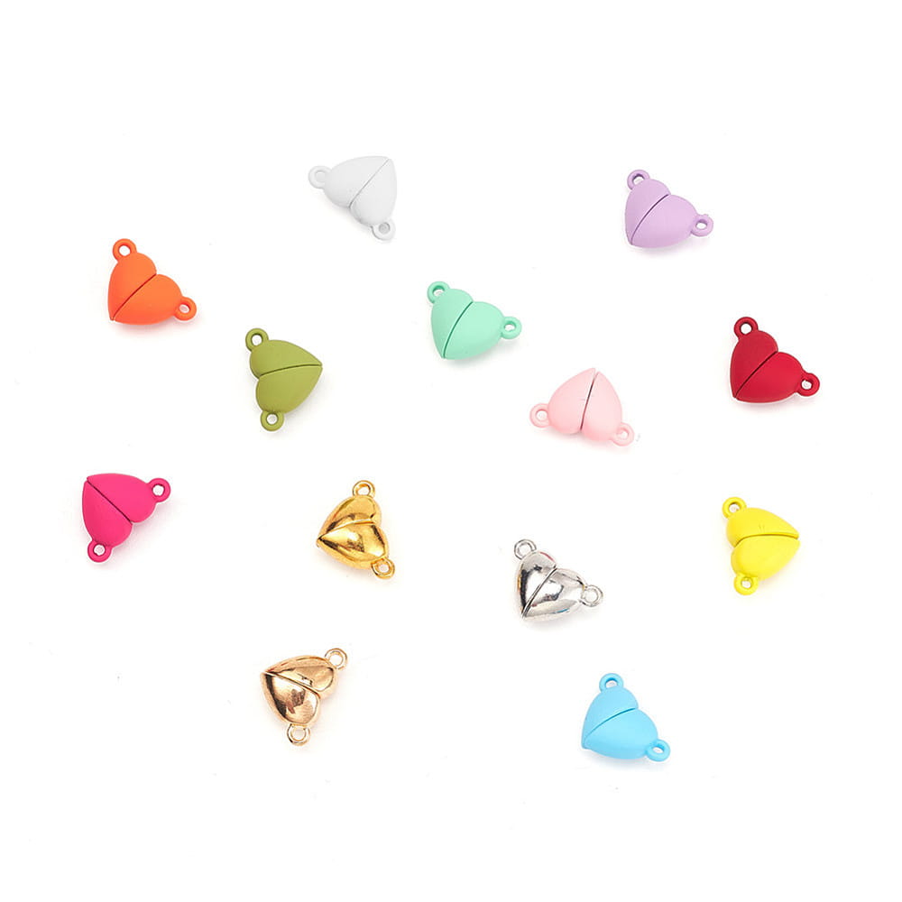 Zestaw zapięć magnetycznych do biżuterii, kształt serduszko, 13 zapięć w miksie kolorów.