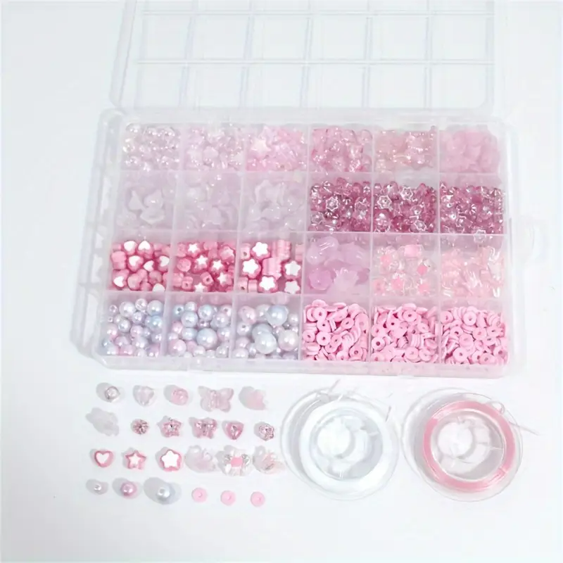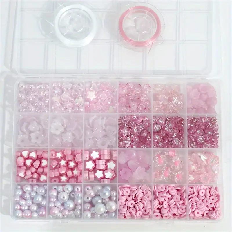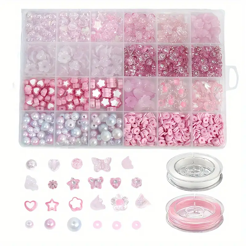 Zestaw PINK KAWAII różowe i przezroczyste koraliki, MIX kształtów i rozmiarów. Duży zestaw w plastikowym organizerze + 2 razy szpulka żyłki. Piękny zestaw do wykonania mnóstwa ciekawej biżuterii, smyczy do telefonu, kolczyków, naszyjników, bransoletek i zakładek do książek. Świetny do rękodzieła w stylu coquette, kawaii, pinkcore oraz balletcore. Propozycje użycia/wykorzystania widoczne na zdjęciach. Zestaw składa się z następujących elementów: