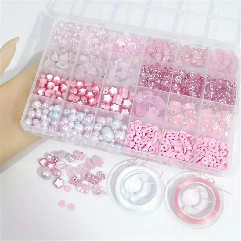 ZKA1 Duży zestaw PINK KAWAII koraliki akrylowe RÓŻOWY do biżuterii