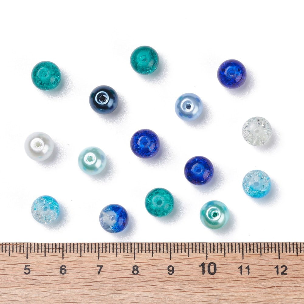 ZSZ1 Zestaw koralików szklanych NIEBIESKI kule kulki 8mm crackle i perełki do bransoletek biżuterii 200szt
