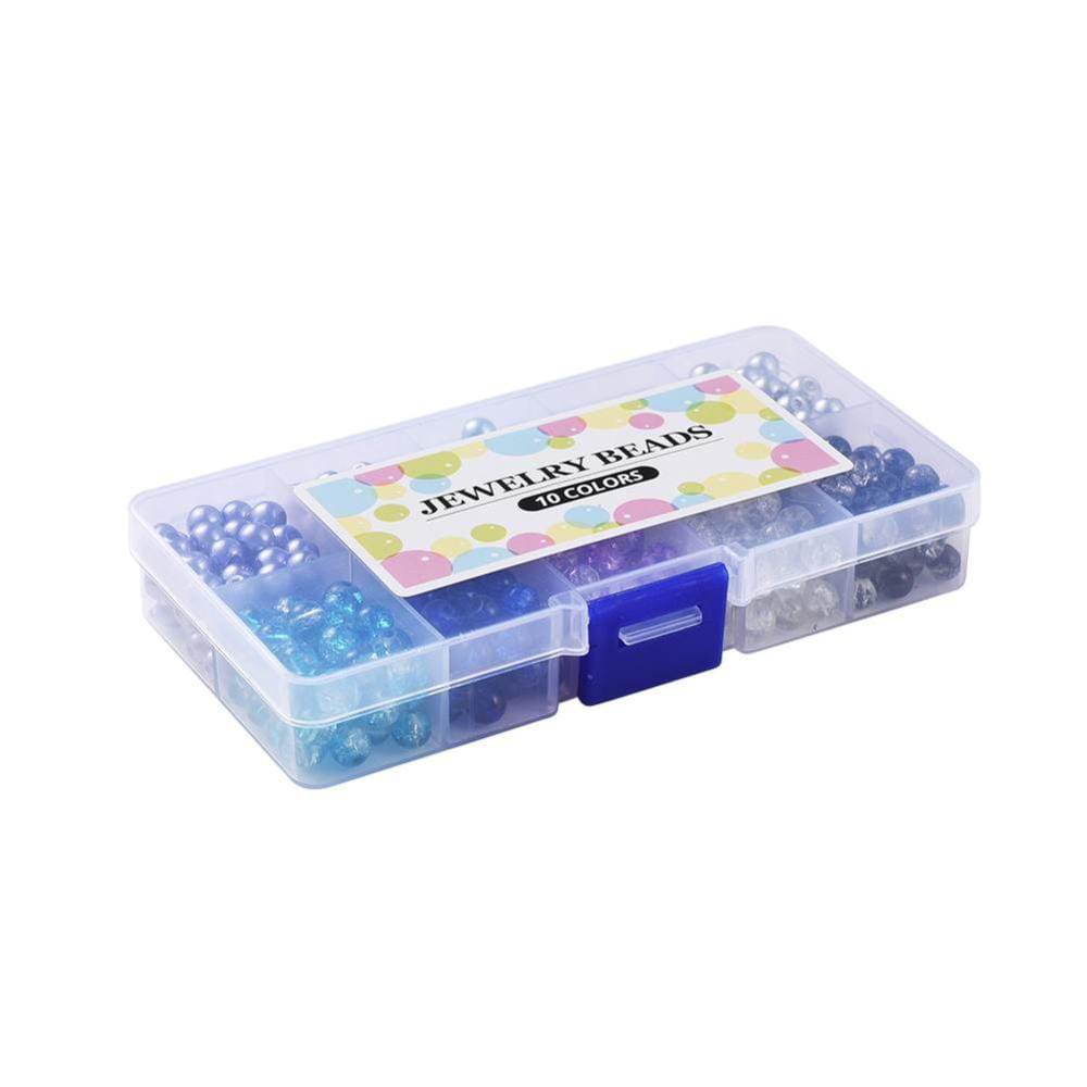Zestaw koralików szklanych mix różne kolory i odcienie niebieskiego w plastikowym organizerze. W opakowaniu znajduje się łącznie ok. 500 sztuk koralików. Koraliki crackle i perełki. Idealne do DIY, również do tworzenia biżuterii. Koraliki znajdują się w plastikowej kasetce z 10 przegródkami. Ten zestaw pozwoli na stworzenie wielu pięknych bransoletek.